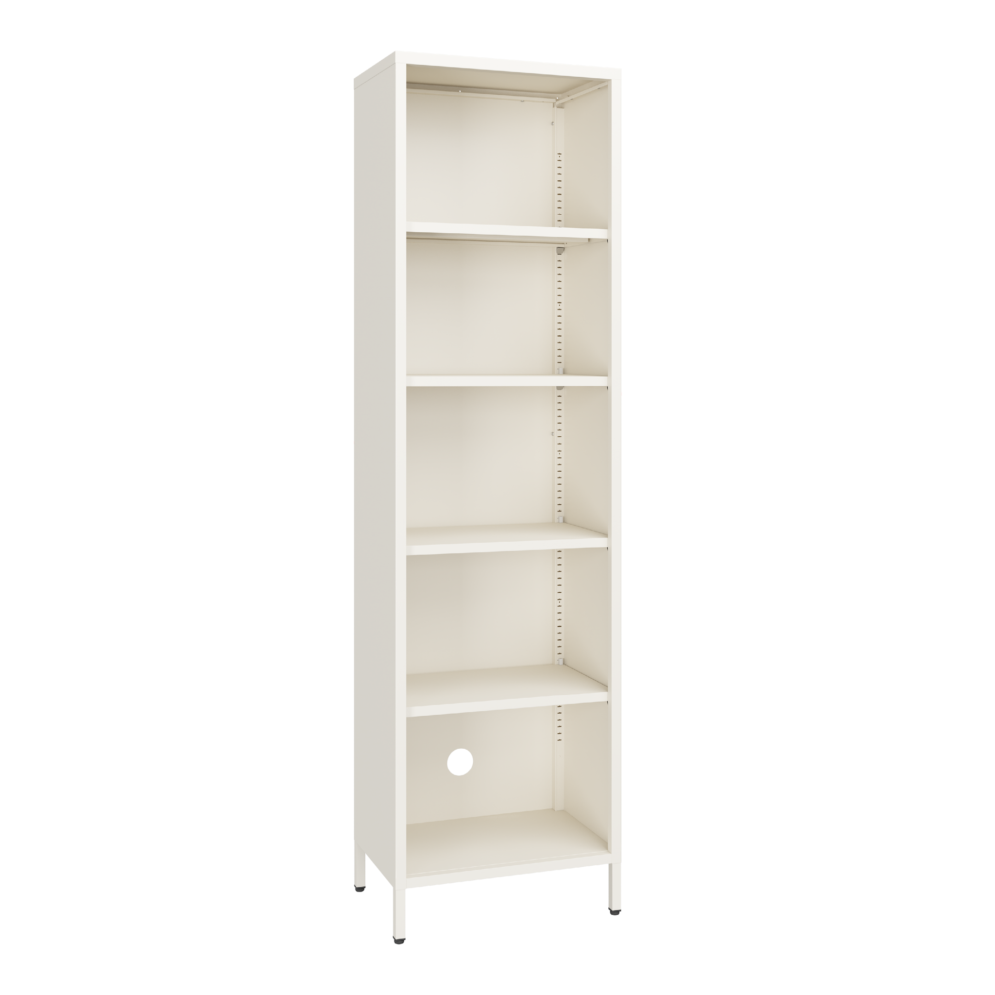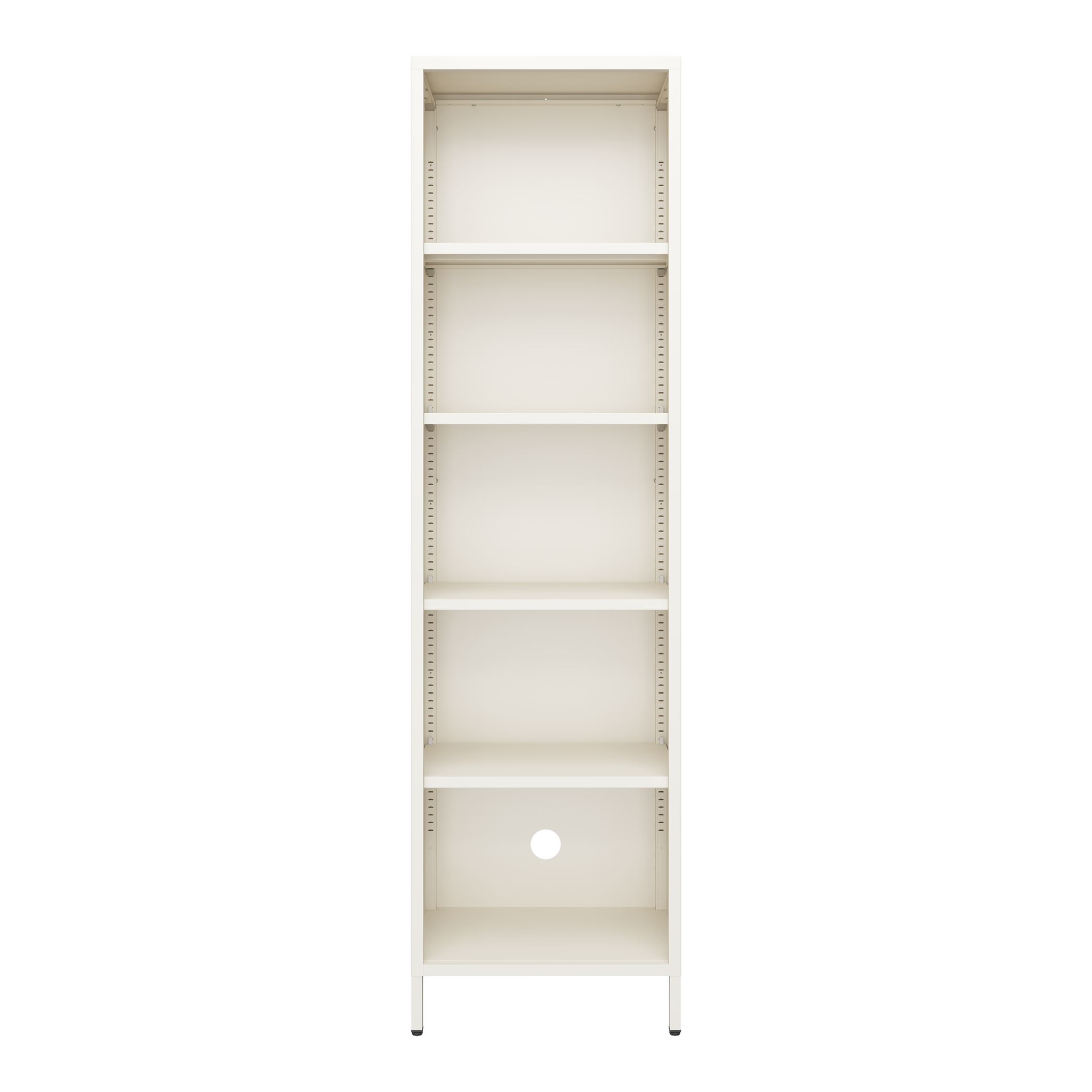 The Wafer Shelf Tall is constructed from durable powder coated steel and features integrated cable routing and adjustable shelving.